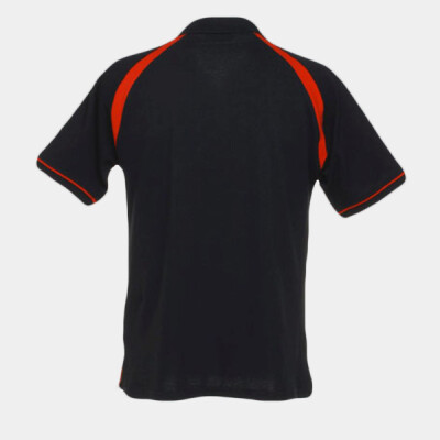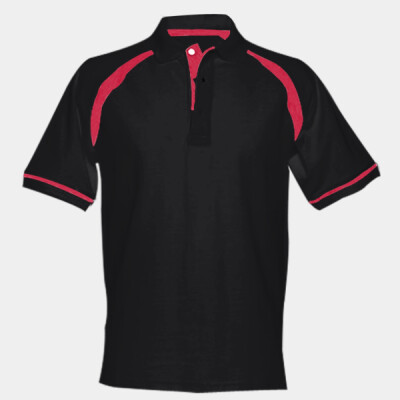 Raglan sleeves. Contrast curved panels down front and back raglans, contrast piping in cuffs. Contrast placket, contrast herringbone taped side vents. Contrast taped back neck. Matching buttons.