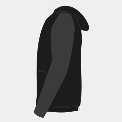 Raglan sleeves, rib cuff at the hem, sleeve opening and kangaroo pocket opening, hood with drawstring and metal eyelets, half moon neck, neck tape.