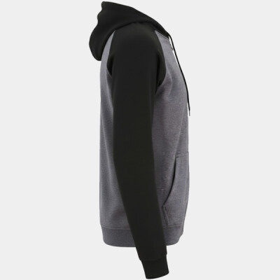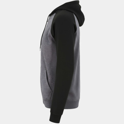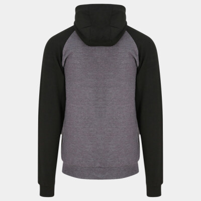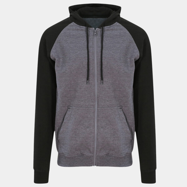 Twin-needle stitching detail. Contrast raglan sleeves. Double fabric hood. YKK plastic zip. Contrast flat lace drawcords. Spilt kangaroo pocket. Ribbed cuffs and hem. Soft cotton faced fabric creates ideal printing surface. Simple tear-out label makes it perfect for rebranding. Brushed inner fleece.
