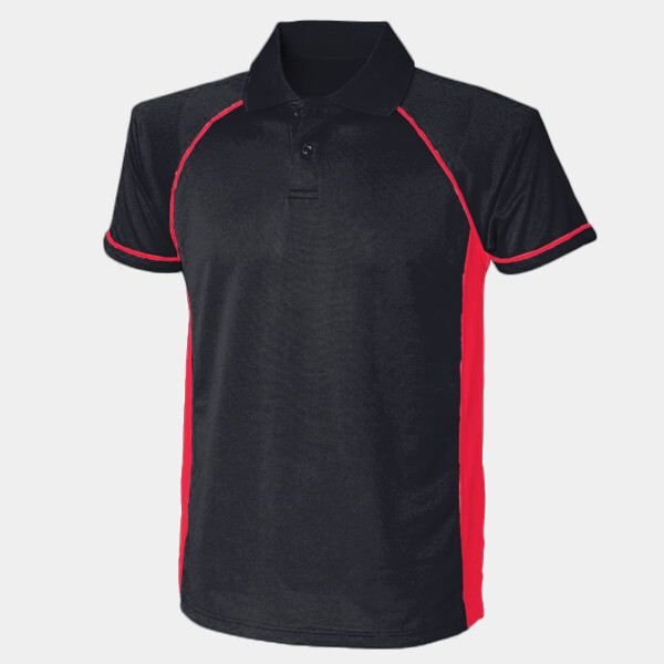Cool Plus® fibres and yarns enabling moisture transportation (wicking), breathability and also quick dry properties. Pique Polo Shirt with contrast panelling and piping on side panels. Contrast Piping on raglan and cuffs. Raglan sleeves for extra freedom of movement. 2 button placket with (plain) ribbed collar.