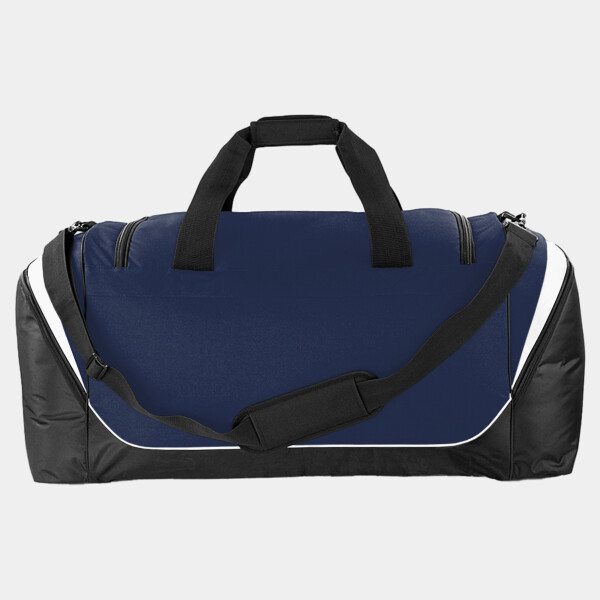 Front pocket designed for easy decoration. Large main compartment. Two large end pockets. Internal valuables pocket. Internal mesh pockets. Water bottle holder. Detachable adjustable shoulder strap with pad. Padded hand grip. Internal baseboard. Protective base feet. Dimensions: 85 x 38 x 35cm Capacity: 115 Litres Embroidery: Front pocket 18 Tubular hoop, End pockets 15 Tubular hoop Approx. Print Area: Front pocket 44 x 20cm, End pockets 17 x 15cm