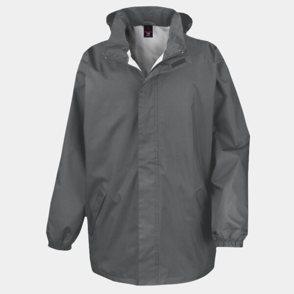 Fully taped waterproof seams. High collar design. Concealed 3 panel fold-away adjustable hood in collar. Full front zip fastening with storm flap cover. 2 front pockets. Inside pockets. Elasticated cuffs with tear release adjusters. Adjustable shock hem cord. Luxury single jersey lining in body with fully lined Polyester material sleeve. Long fit with fashion cut back. This garment contains over 25% of recycled materials. Waterproof. Windproof. Mid weight.