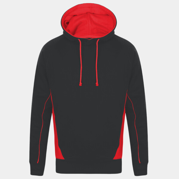 Contrast shaped side panelling, contrast piping on sleeve, raglan sleeves, Contrast lined hood, angled front pockets Also available in kids'