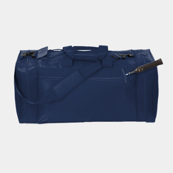 Adjustable webbing shoulder strap with pad. Wet pack. Racket compartment.