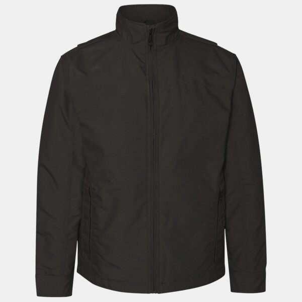 Waterproof Hydrafort 5000 peached polyester fabric. Polyester taffeta lining. Windproof fabric. Critically taped seams. (Inner) 220 series anti-pill symmetry fleece. 2 Lower pockets. (Special Features) Concealed hood with adjuster. Adjustable cuffs. 2 Zipped lower pockets. Hook and loop fastening at hem for embroidery access.