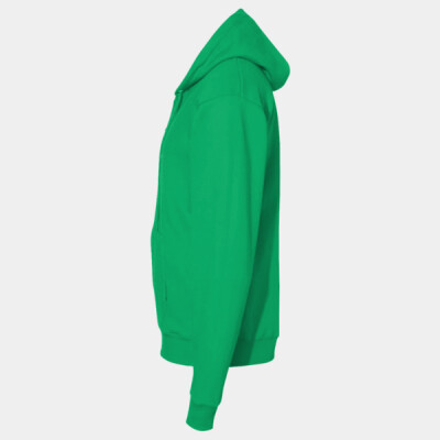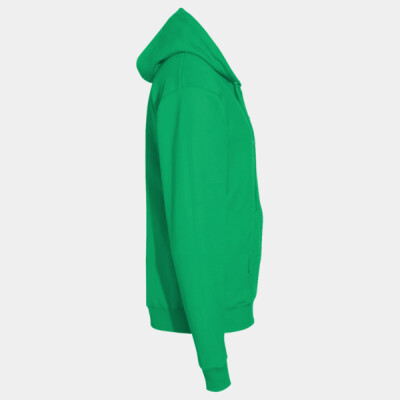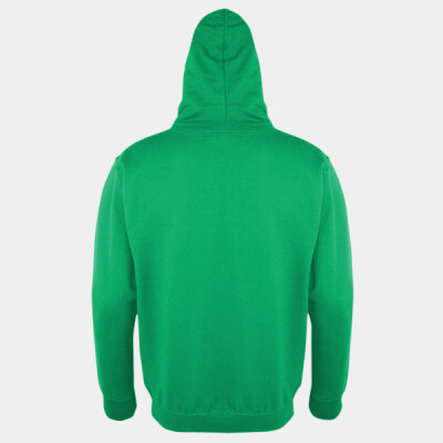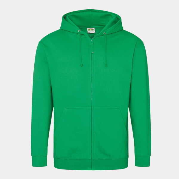 Full zip hoodie with a covered main zip. Self fabric with twin needle stitching detailing and double fabric hood with self coloured cords and kangaroo pouch pocket. Right hand side pocket has small hidden opening for ear phone cord feed and hidden ear phone loops. Ribbed cuff and hem and self coloured twill tape puller. Also available in kids'