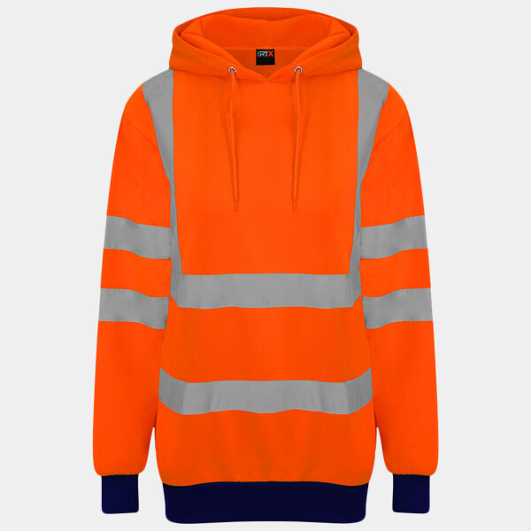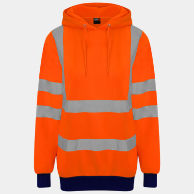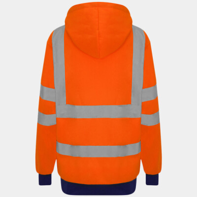 Certified EN ISO 20471:2013+A1:2016. RIS-3279-TOM ISSUE 1:2016 (Orange only). HV Orange/Navy & HV Yellow/Navy - Class 3. Double fabric hood with adjustable drawcords. Ribbed contrast colour cuff and hem. Inner fabric brushed fleece. Over shoulder, around arm and body reflective tape.