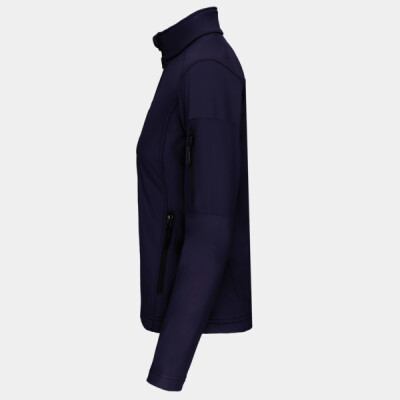 Softshell 3 layer bonded fabric. Performance membrane mid layer and microfleece inner layer. Fitted style, zip through front. Two front zipped pockets and one zipped pocket on left sleeve