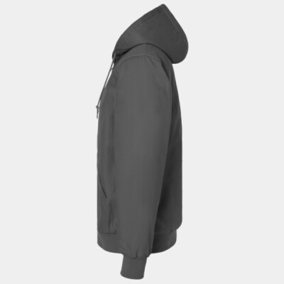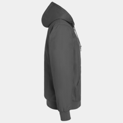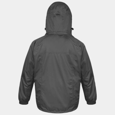 100% polyester ripstop outer. Outer jacket is waterproof 3000mm with taped seams, breathable 3000g and windproof. Detachable, adjustable lined hood with reflective peak. Full length two way zip. Tear release outer double storm flap with studs. Right chest pocket. Two front pockets. Elasticated cuffs with tear release adjuster. Adjustable drawcord hem. Removable two layer black soft shell jacket. Inner jacket has a full length zip. Inner and front side pockets. Plain cuffs. Cut out label. Access for decoration on outer jacket.