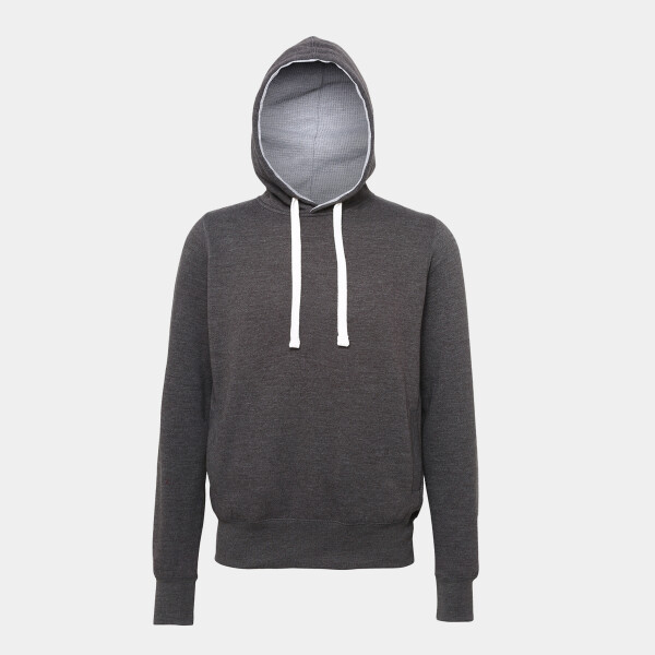 Overlock stitching detail throughout. Double fabric hood with Heather Grey waffle fabric inner. Chunky white flat lace drawcords. Hidden earphone loops. Deep ribbed cuff and hem. Soft cotton faced fabric creates ideal printing surface. Simple tear out label makes it prefect for rebranding. Side panels for stylish fit. Kangaroo pouch pocket with small hidden opening for ear phone cord feed. Side pockets with small hidden opening for ear phone cord feed. Worldwide Responsible Accredited Production (WRAP) certified production.