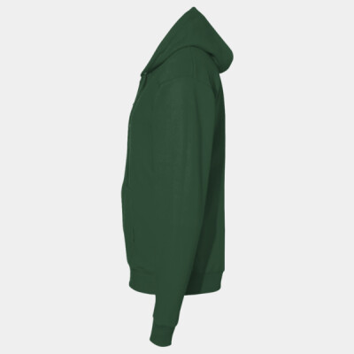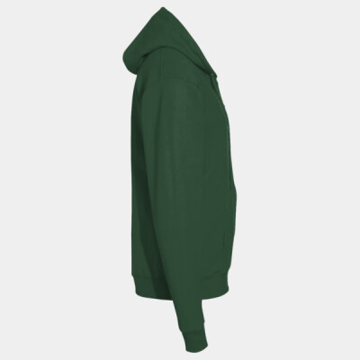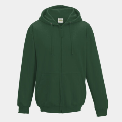 80% ringspun cotton/20% polyester.* Soft cotton faced fabric. Brushed back fleece. Drop shoulder style. Double fabric hood with self colour drawcord. Full length covered plastic zip. Front pouch pockets. Ribbed cuffs and hem. Twin needle stitching. Tear out label.