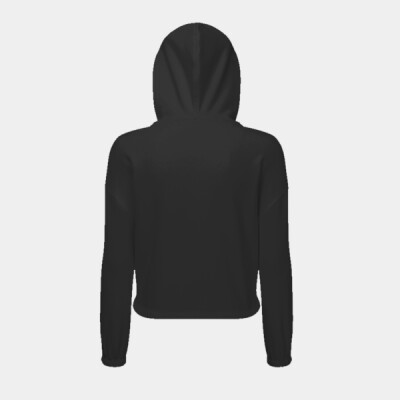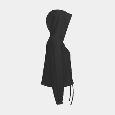 Oversized, cropped, zipped hoodie. Zip to centre. Drawstring tie to waist. Kangaroo pockets to front. Contains recycled polyester fabric. The product contains no branded neck or waist label. Removable kimble or looped garment tags. The inner seam label holds important product information on one label with a second label containing brand information which can be cut-away.