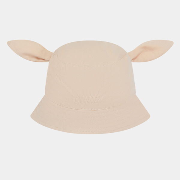 Kids bucket hat with embroidered character facial features. Two colourways in different animal styles. Top-stitched brim detail. Flat top. Elasticated back. Suitable for decoration.