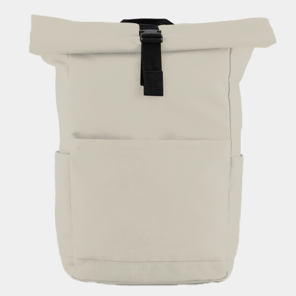 Fully lined with 100% recycled 210D polyester. Contains 100% certified recycled polyester, PVC-free. Zipped main compartment. Internal slip pocket. Zipped front pocket. Rear zipped pocket. Side pockets. Padded back panel. Roll-top closure. Padded adjustable shoulder straps. TearAway label for ease of rebranding.